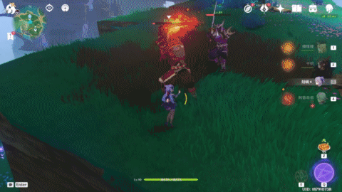 The Upper Half this time is almost entirely bound to the Pyro element. It is needed to break the Cryo Cicin Mage's shield, and it is also the only element that can break the Boss's mechanism.